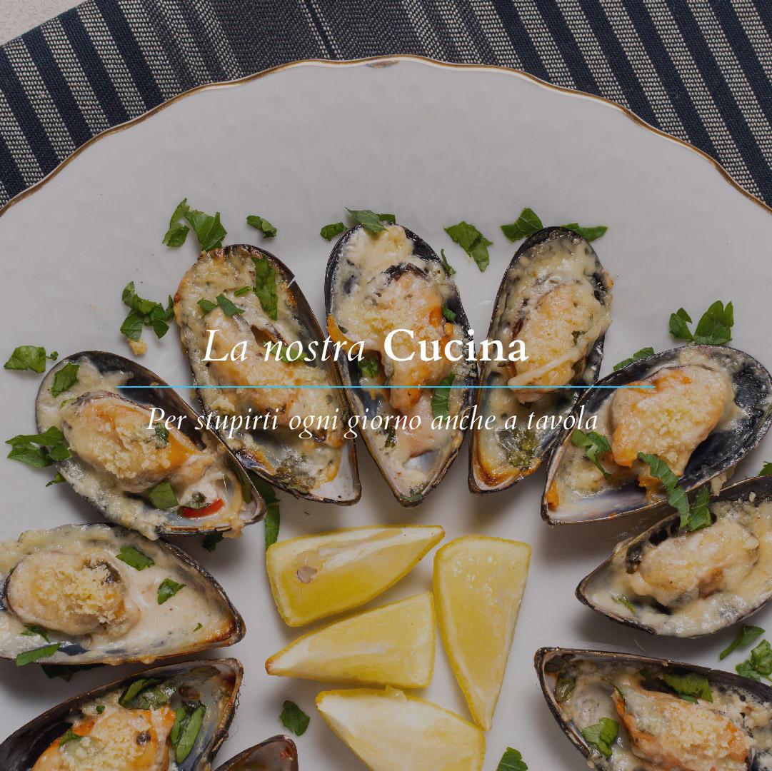 Il nostro Chef ogni giorno stupisce gli ospiti con due primi piatti, di carne e di pesce, e due secondi, anch’essi di carne e di pesce, preparati con ingredienti freschi e genuini.